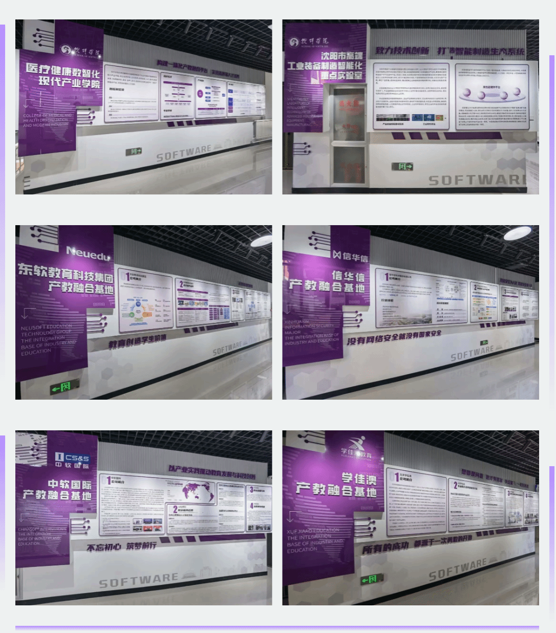 产业学院、全真企业由学院与东软教育科技集团、中软卓越信息技术有限公司、信华信技术股份有限公司、北京学佳澳软件科技发展有限公司共同投资,与企业实践基地共同构成校内外协同的工程教育和双创实践环境,为学院实施“2.5+0.5+1”的分段式人才培养校企协同模式提供必要保障,实现了第6学期“引企入校”,使企业教师在校内实践基地完成与专业(方向)适配的课程模块教学。