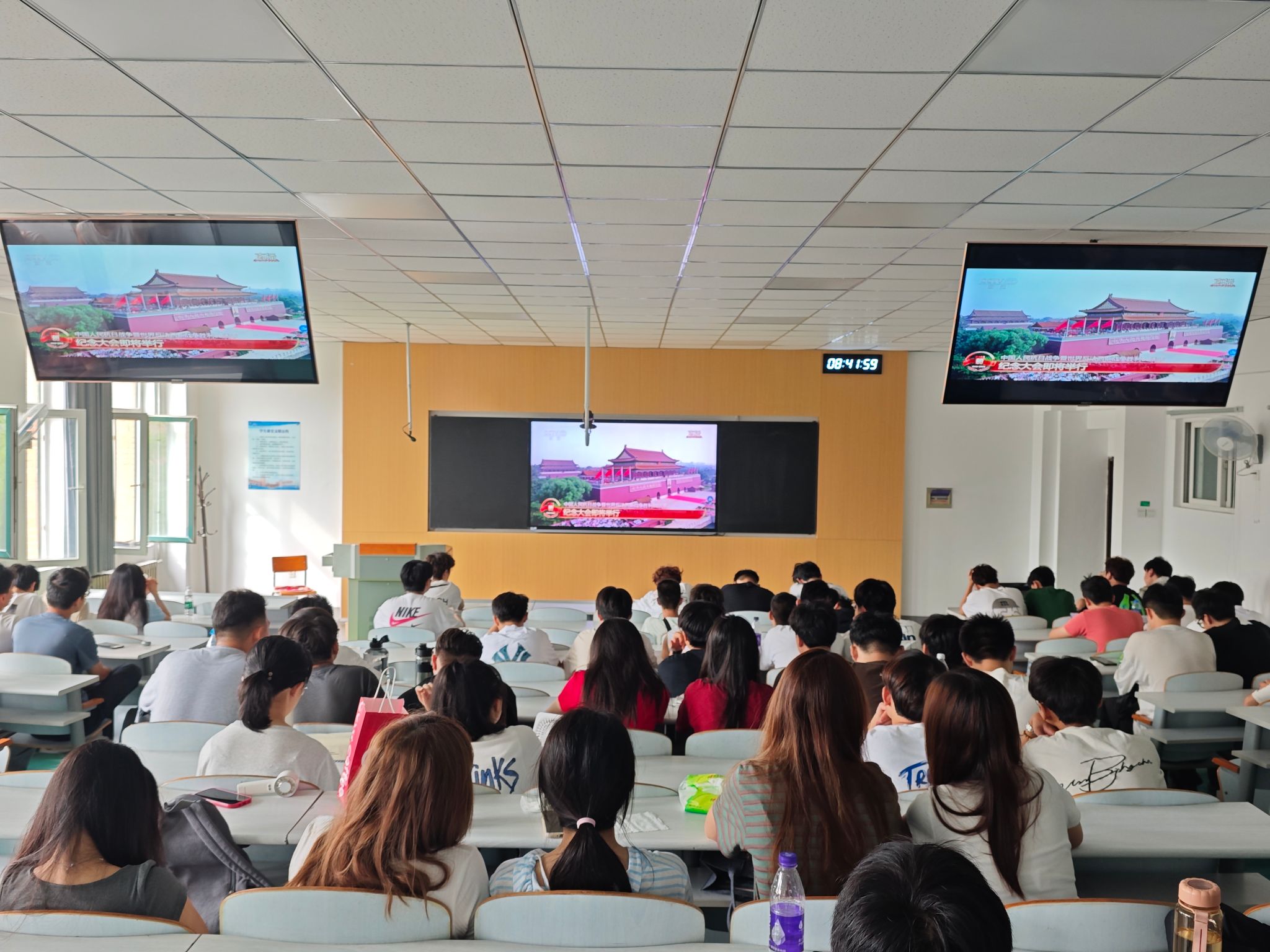 当礼炮齐鸣、国旗升起,我攥紧手心,仿佛与天安门广场同频共振。当阅兵进入尾声,我注意到身边的同学红了眼眶。我瞬间有所感悟,原来爱国不是抽象的口号,它是实验室里熬夜的数据,是运动场上奔跑的汗水,是我们未来选择职业时,心里悄悄亮起的坐标:如何让中国更强大,如何让世界因我们多一点安宁。今天,不仅是胜利者的纪念日,更是播种者的清晨。我们这一代人,终将成为下一次检阅的答卷人,要立志以专业报国践行“请党放心、强国有我”的青春誓言。