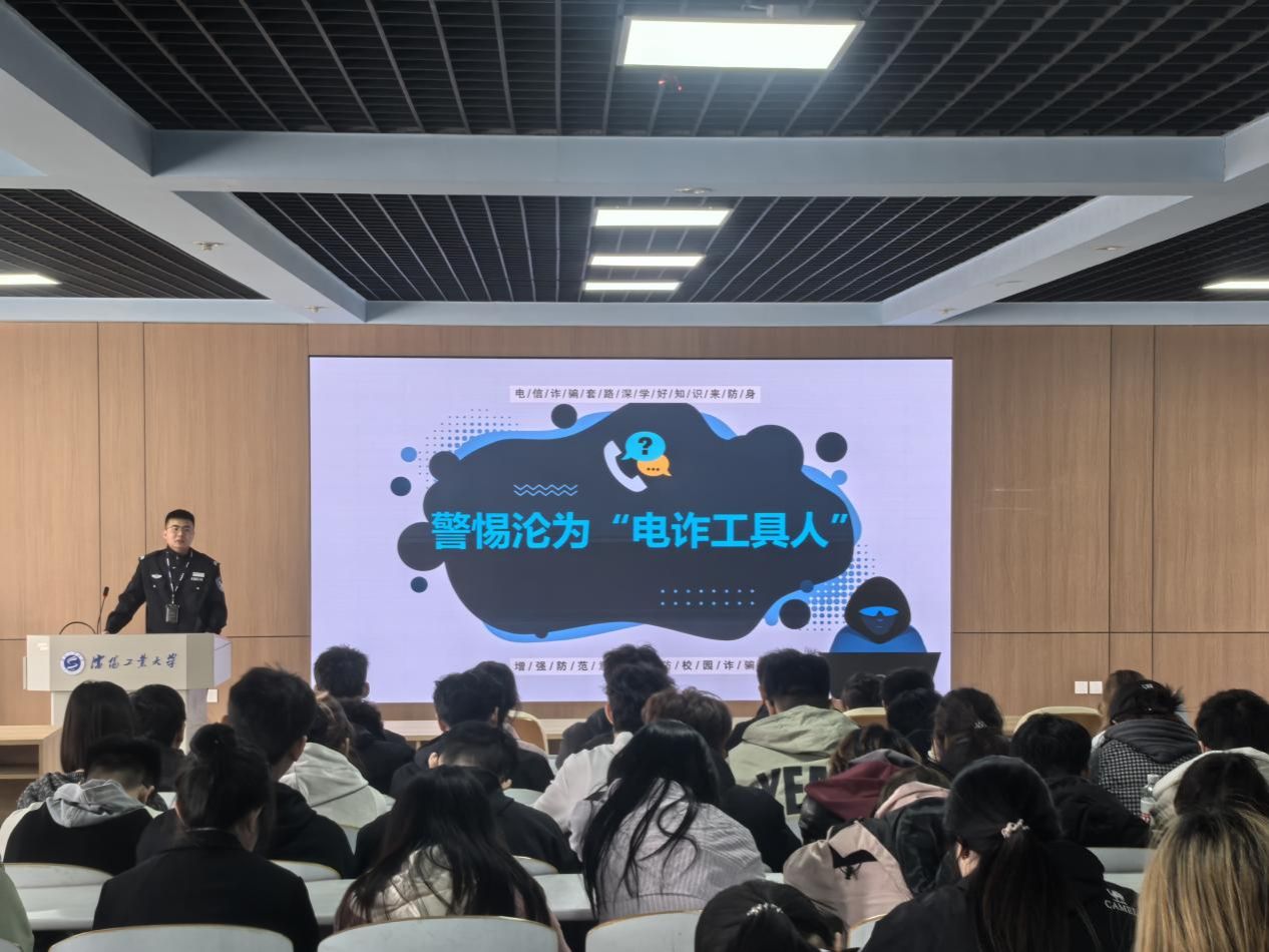 宣讲环节,李韬警官以“电信诈骗套路深 学好知识来防身”为主题,结合《电信网络诈骗犯罪白皮书》,深入剖析当前电信网络诈骗犯罪的整体态势、典型特征及大学生易受骗根源。围绕刷单返利、网游虚假交易、冒充熟人、虚假购物、客服诈骗、虚假贷款等高校高发诈骗类型,李警官通过真实生动的典型案例,逐一拆解诈骗分子作案手法、识别技巧与防范关键,用通俗易懂的语言揭示诈骗本质。同时,针对“沦为电诈工具人”“境外高薪招聘陷阱”等高风险场景进行重点警示,引导学生认清不法诱惑、守住安全底线。宣讲最后,李警官以简洁易记的防范口诀,重申“不轻信、不透露、不转账”的“三不”核心原则,切实帮助学生筑牢思想防线、提升防护能力。