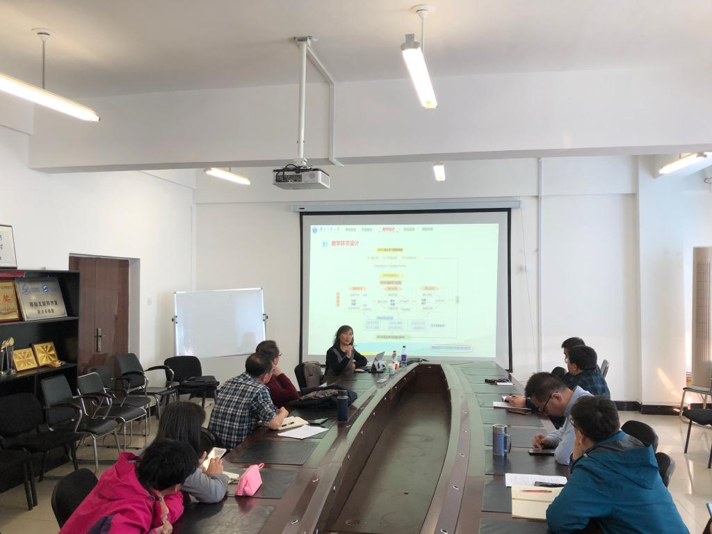 贾丹平教授首先就一流课程建设工作中的各项任务进行详尽的梳理,逐一从课程选型、资源建立、教学设计、教法运用等方面分享宝贵经验。在教学环节设计中,贾丹平教授将凝练的“三阶四法两练一反思”的设计理念做了详细的介绍,此方法使线上线下教学过程形成无缝对接,为老师们提供了宝贵的创新性思路。在教法运用环节中,贾丹平教授建议要积极探索教学改革新观念,她提出的“三导三自四转变”的启发式、探究式混合教学模式,为老师们提供了新的教学思路和有力参考。最后,贾丹平教授将一流课程申报过程中的注意事项和宝贵经验进行了分享。贾丹平教授强调,一流课程是一流专业建设的核心指标,在打造一流课程过程中,应注重利用线上优质资源,做好线上线下良性互动,最终形成以一流课程支撑一流本科教育,进而对接教育部一流课程建设的工作闭环。