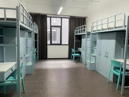 住宿以 3-4 人间为主,“上床下桌 ”布局,床铺长 2 米,公共卫浴清洁及时,公寓有 24 小时安保、 自习区、台球厅及楼层洗衣机。食堂 3000 余平米,1000 余个餐位,明厨亮灶, 设基本大伙、特色风味与民族餐厅,满足多样需求。
