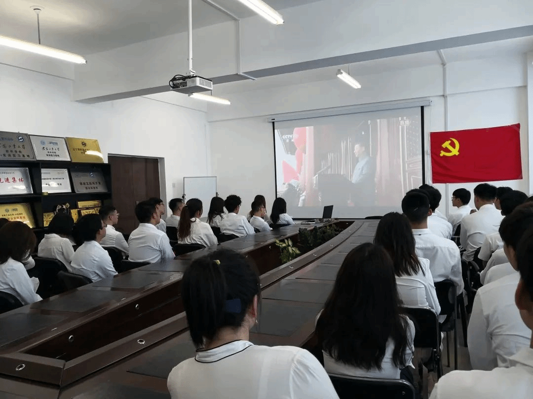 在座党员佩戴党徽,精神昂扬,专注聆听,认真学习,与全国九千五百多万名中国共产党党员一起回望我党波澜壮阔的奋斗历程,眺望充满光明的奋进之路,心潮澎湃,豪情满怀。