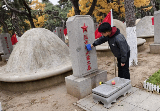 在杨根思、黄继光、邱少云等烈士墓碑前,学院师生深深三鞠躬,学生代表手持抹布轻轻擦去碑身浮尘,以实际行动告慰英烈:他们的丰功伟绩会被永远铭记,他们为之奋斗的事业后继有人,他们强国富民的理想正在变成现实。