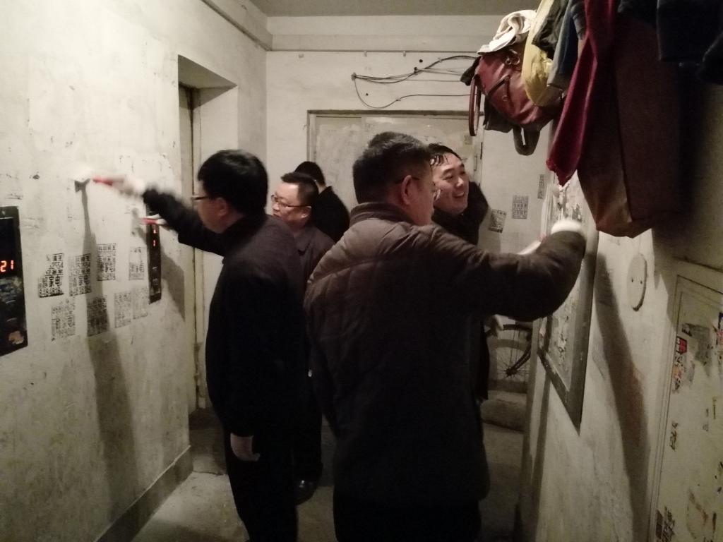 活动中,党员们带着小铲子、刷子、豆油等工具,仔细铲除楼道内安全拉门、消防栓上的小广告。老师和同学们不怕脏、不怕累,面对形形色色的小广告,一一用铲子进行清理,不给他们留下一丝“生存”空间,有效维护了社区环境、居民生活环境的干净整洁。
