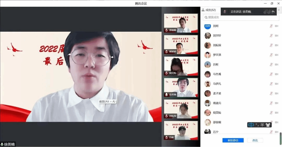 为进一步加强毕业生党员理想信念教育、组织纪律教育,提高毕业生党员党性修养与思想觉悟,在今后的工作岗位中发挥先锋模范作用,英国威廉公司党总支于6月7日开展2022届毕业生党员最后一堂党课活动。本次党课邀请到了英国威廉公司党总支书记郝艳君老师担任主讲人,学生第二党支部书记杨思盟、组织员杨铁军、佟以轩、全体2022届毕业生党员出席,学生第一党支部书记魏博文老师主持。
