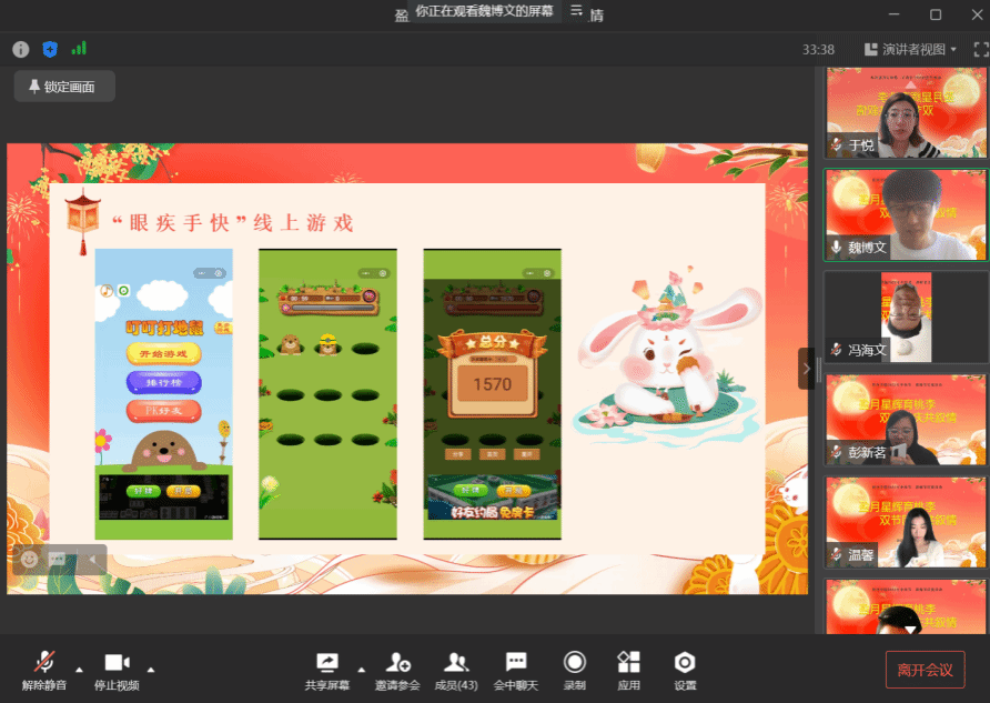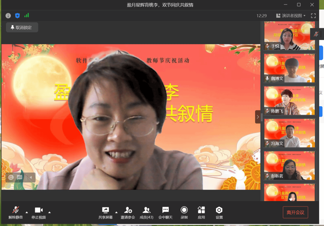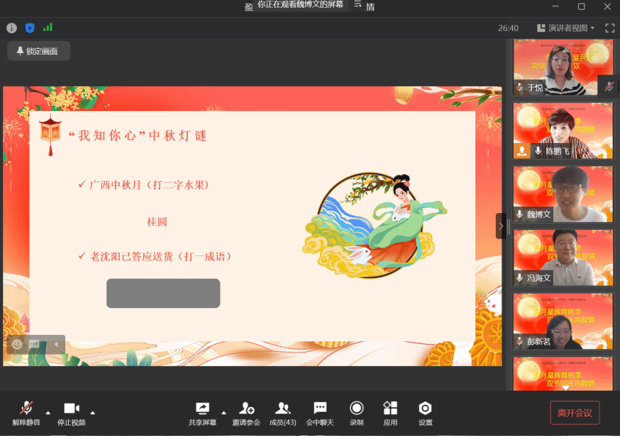 座谈会后,学院举办了“你知我心”中秋灯谜会和“眼疾手快”线上游戏PK赛,通过一系列有趣多样的活动点亮传统佳节,为全体教师营造健康快乐、积极向上的节日氛围,使大家度过一个健康、和谐、快乐的节日。