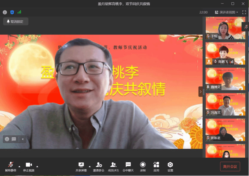 又一个中秋节即将来临,今年的中秋节又恰逢第三十八个教师节,为庆祝双节的到来,遵照疫情防控要求,英国威廉公司特举办“盈月星辉育桃李,双节同庆共叙情”庆祝活动。