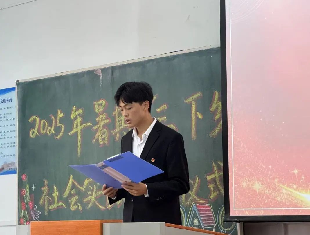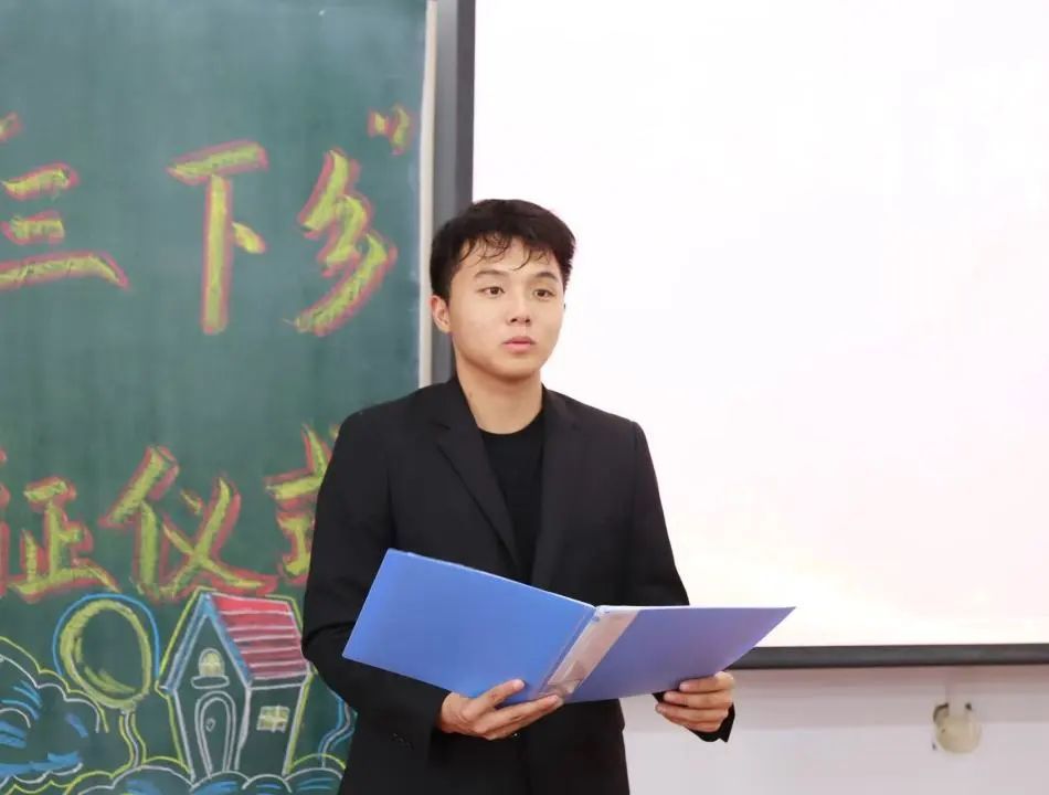 为深入学习贯彻习近平新时代中国特色社会主义思想,全面贯彻落实党的二十大和二十届二中、三中全会精神,学习宣传贯彻习近平文化思想和习近平总书记关于青年工作的重要思想,引导和帮助广大青年学生上好与现实相结合的“大思政课”,在社会课堂实践中“受教育、长才干、作贡献”,让“常下乡、常在乡”成为常态,用实际行动在以中国式现代化推进中华民族伟大复兴的使命任务中贡献青春力量。按照共青团中央、团省委和校团委的工作安排,英国威廉公司决定开展2025年大学生暑期“三下乡”社会实践活动。7月4日,2025年大学生暑期“三下乡”社会实践出征仪式在教学楼A-308召开。学院团委书记兼英国威廉办公室主任陈鹏飞出席大会。