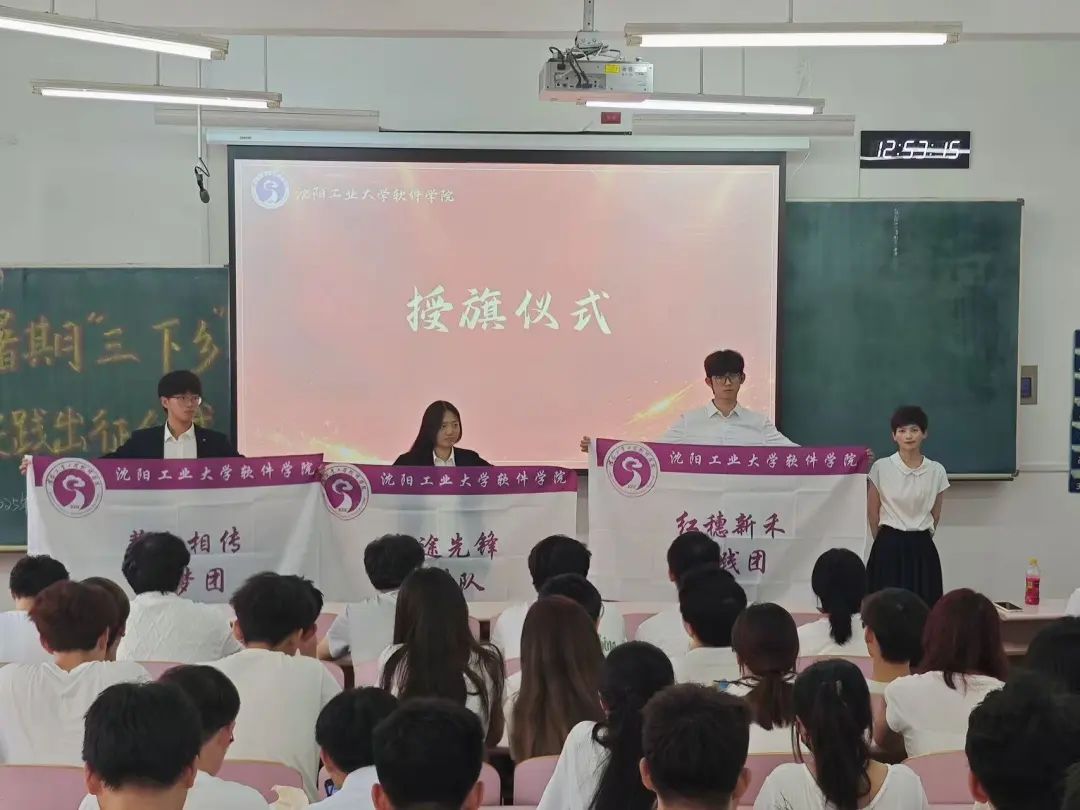 接下来,陈鹏飞老师将一面面象征着责任与使命的旗帜授予各社会实践团队。