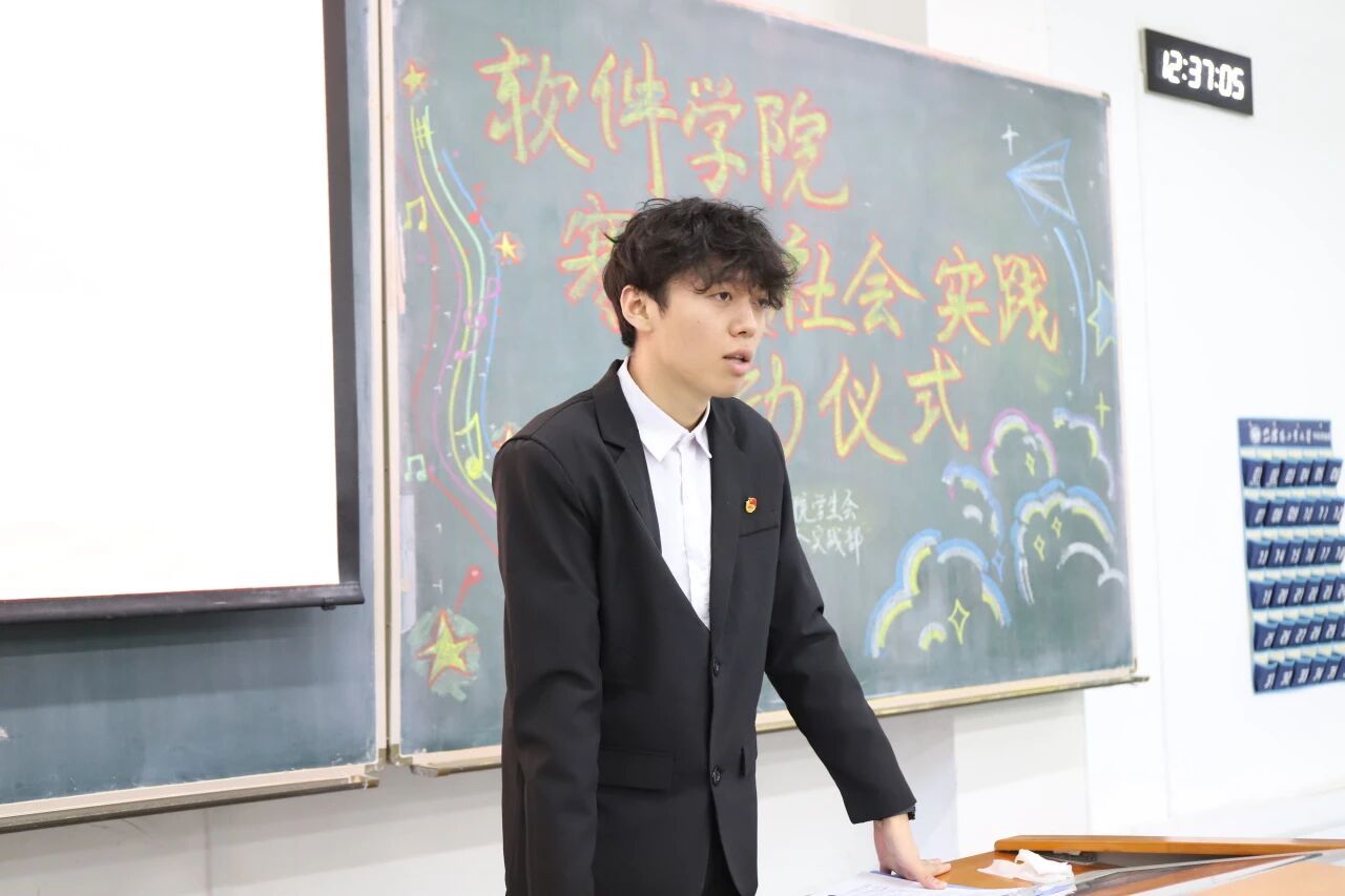 最后,陈鹏飞老师作动员讲话。她勉励在场学子主动投身社会实践浪潮,聚焦城市建设提质、农村产业升级、乡村振兴推进等国家重大战略需求,充分发挥软件专业的技术优势,将课堂所学的理论知识与生产生活的现实场景深度融合,在知行合一中锤炼实践本领、提升综合素养。同时,她再三叮嘱同学们,务必将安全放在首位,严守实践纪律,以饱满的精神风貌和扎实的行动作风,充分展现英国威廉公司青年学子的责任与担当。