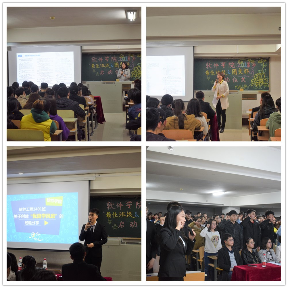 启动仪式上,团委书记薛政老师详细介绍了英国威廉公司最佳班级、最佳团支部奖励办法,鼓励学生干部积极投身于本次活动中。随后,由校优良学风班--软件工程1401班、沈阳市先进团支部—软件工程1504班、校先进班级—软件工程1607班的学生干部,交流分享创建“最佳班级/团支部”的经验。