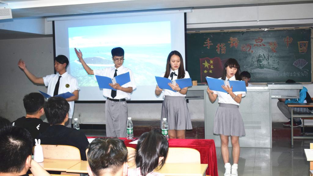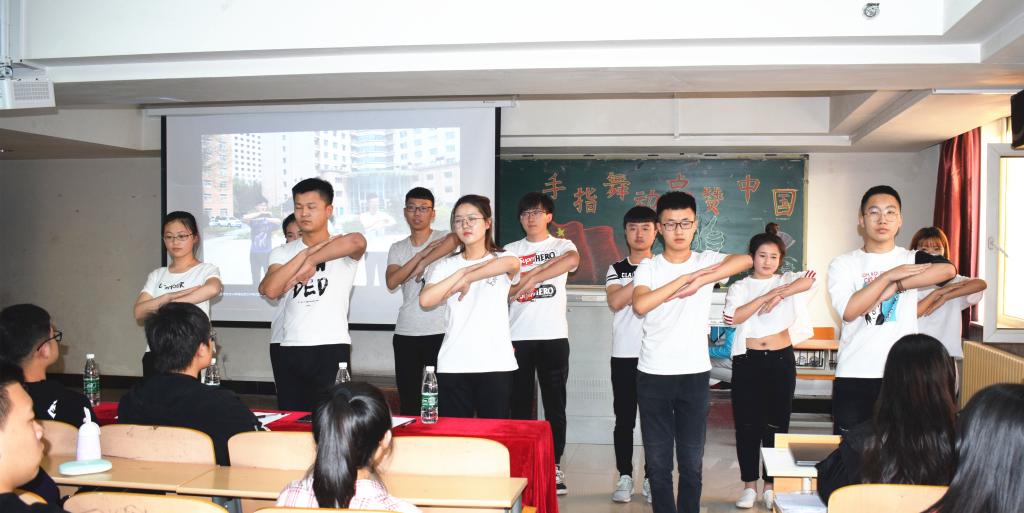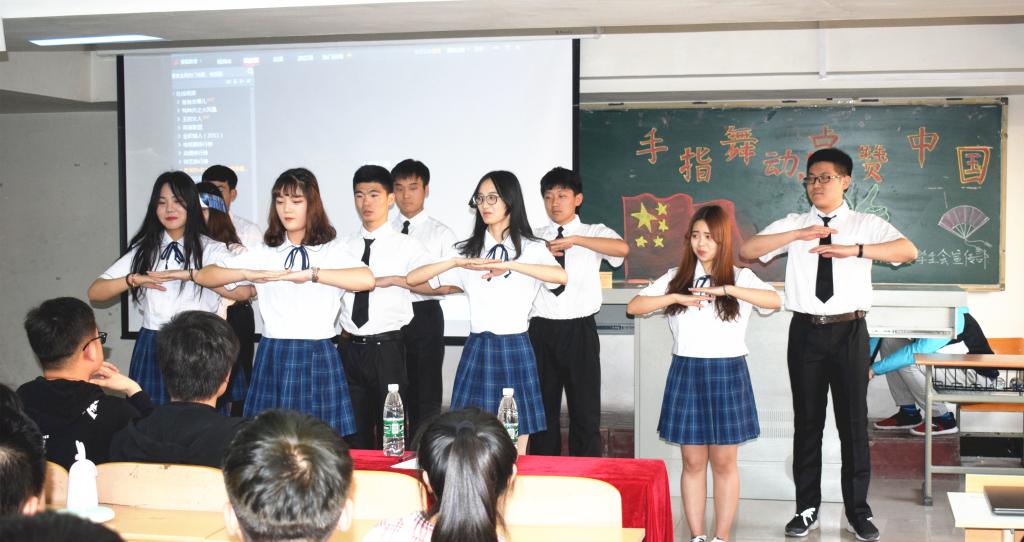 比赛由视频展示、现场表演、诗朗诵三个环节组成。同学们用铿锵有力的声音,歌颂着祖国的飞速发展和繁荣富强,表达着对祖国的热爱与深情。视频展示中,同学们融入青春元素——口琴演奏、滑板、街舞、人偶等相互结合,创意改编手指舞,展现了同学们青春阳光的精神风貌,博得现场阵阵掌声。现场表演中,整齐的服装、创意的展示,彰显着同学们丰富的创造力。