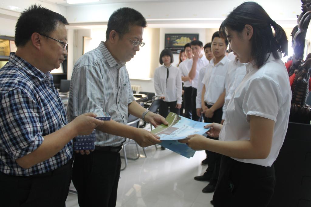 2018届校友理事会秘书长张晋源同学代表届全体毕业生对学校的培养表示感谢,并送上《一帆风顺》工艺品,以此祝福母校蓬勃发展。最后,学院领导为所有理事颁发聘书,并送上为每名学生定制的姓名钥匙扣,祝愿毕业生前程似锦,鹏程万里。