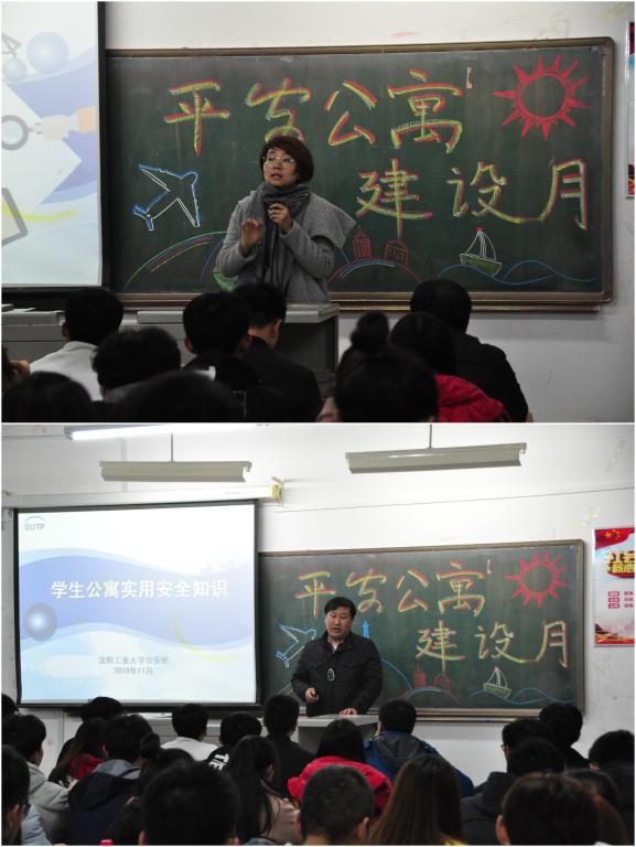 此次活动中特别邀请到校公安处副处长李杰老师为同学们做公寓安全知识讲座。李老师从安全的重要性、防火、防盗、防骗四个方面,为同学们进行了一次全面细致的安全培训。通过观看近些年各高校发生的火灾视频,同学们充分意识到违章用电的危害性。同时,李老师结合我校校园环境及学生公寓的特点,讲述了火灾的预防、应急处理办法、自救等相关安全常识。讲解深入浅出、案例生动、警示性强,具有很强的针对性和指导性。