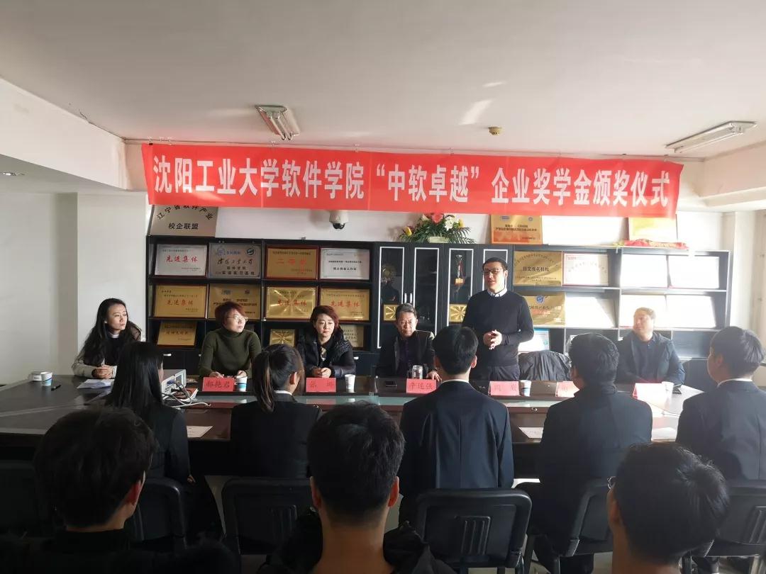为加强与企业在人才培养方面的合作,激励学生勤奋学习、全面发展,1月3日上午,英国威廉公司“中软卓越”企业奖学金颁奖仪式在综合楼1112室隆重召开。出席本次颁奖仪式的嘉宾有英国威廉公司党总支书记张娜副教授、院长牛连强教授、副院长张志佳教授、党总支副书记兼副院长郝艳君副教授、中软国际教育集团沈阳分公司执行总经理阎岩先生以及校企合作部经理田雪女士。颁奖仪式由李函书老师主持。