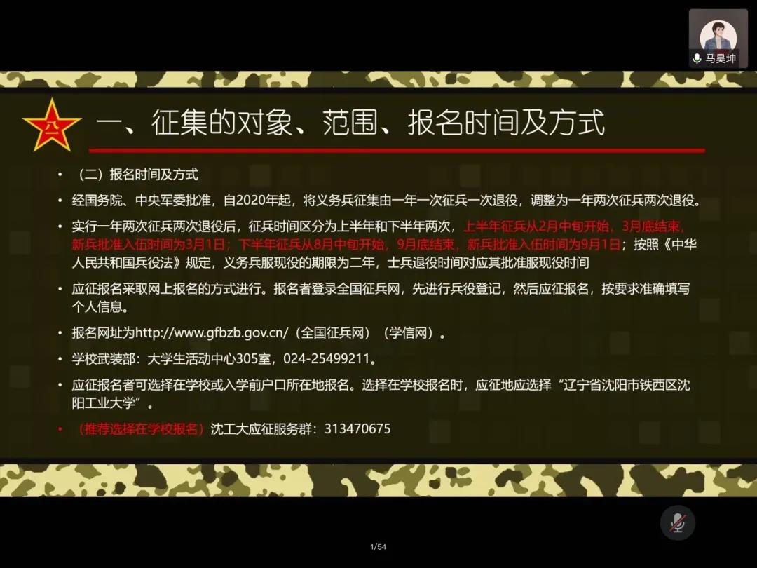 征兵宣讲人李岳霖:2015年入学,在英国威廉公司软件工程专业学习,2016年9月到锦州某武警部队服役,期间表现优异,被评为优秀士兵。于2018年考入某武警军事院校,成绩优异,表现良好,2019荣获校优秀学员。