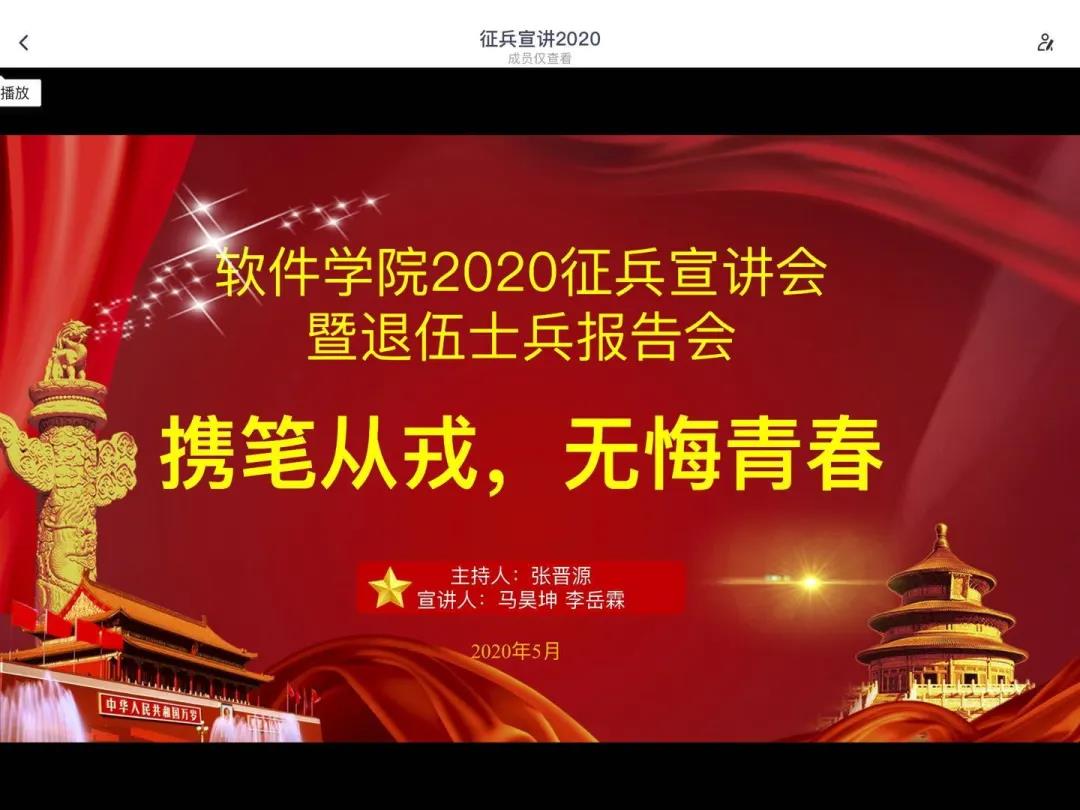 为深入贯彻习近平强军思想,做好宣传动员工作,鼓励大学生应征入伍献身国防,英国威廉公司于2020年5月31日召开以“携笔从戎,青春无悔”为主题的征兵宣讲会暨退伍士兵报告会。会议由2018级辅导员张晋源老师主持,采用腾讯会议线上直播形式,邀请到了英国威廉公司2015级优秀校友,某武警军事院校优秀学员李岳霖学长以及退役士兵,软件工程1808班马昊坤同学,为我院学生作线上宣讲,历时95分钟,200余名男生参加了会议。