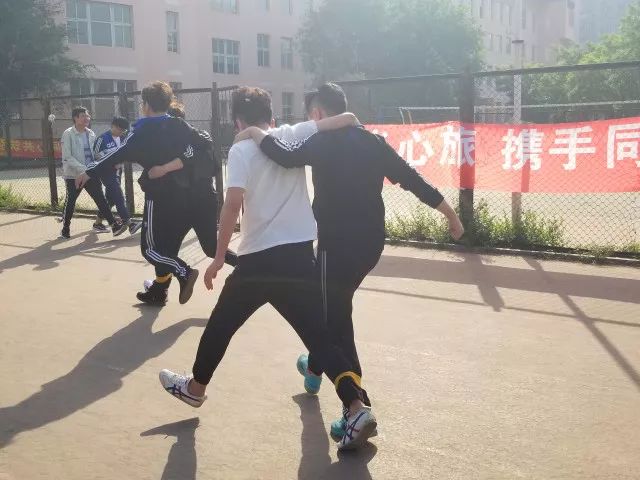 赛场上,同学们你追我赶,队友之间凭借着默契的配合,各个班级都出色的完成了比赛。在比赛中,他们不仅拉进了心与心之间的距离,学会了互相帮助,更锻炼了同学们的团队协作能力。