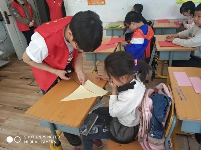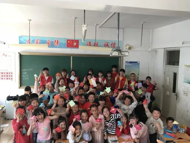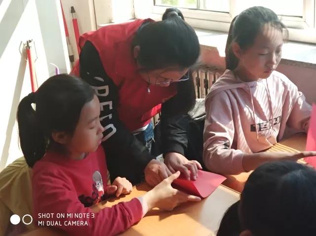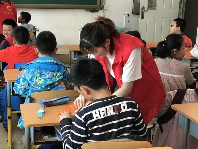 为了能够与孩子们更好的互动起来,志愿者提前聚集在一起,学习简单而又实用的手工折纸。下午1点志愿者前往保工一校。刚进教室,孩子们就开心地同志愿者打招呼,志愿者也热情的回应着。老师介绍完后,志愿者便开始与孩子互动起来。