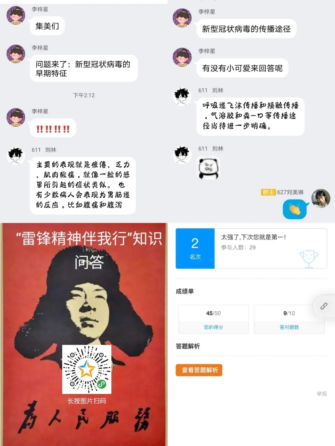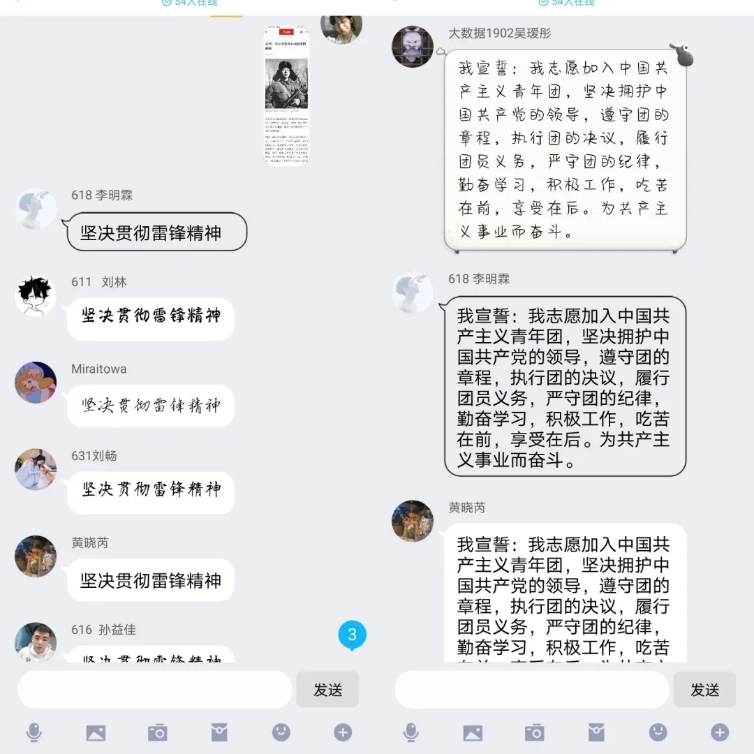 为弘扬雷锋精神,加强社会主义核心价值体系建设,在校团支部领导的组织下,各班均召开了线上主题团日活动,在这个特殊的时期,各班以不同的方式让同学们了解到了雷锋精神并且向奋战一线的志愿者们传达了最真切的祝福。疫情不停,奋战不止,每个人都是雷锋精神的践行者。
