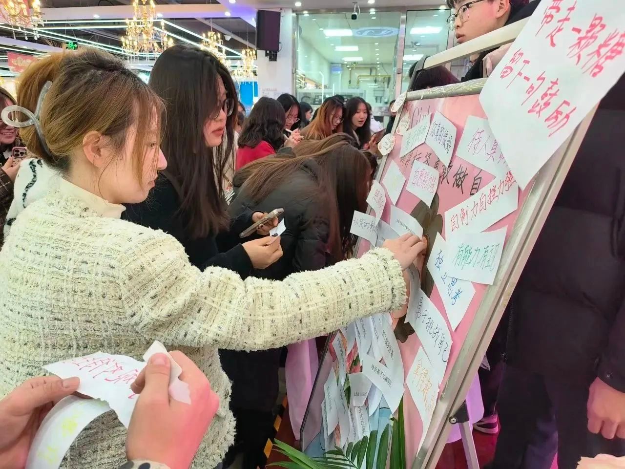 女孩们写下自己的愿望及联系方式,学院从中挑选出幸运的女孩帮助其实现,活动中其他同学也积极加入到了互相实现愿望的队伍中。心有所愿,终会实现!