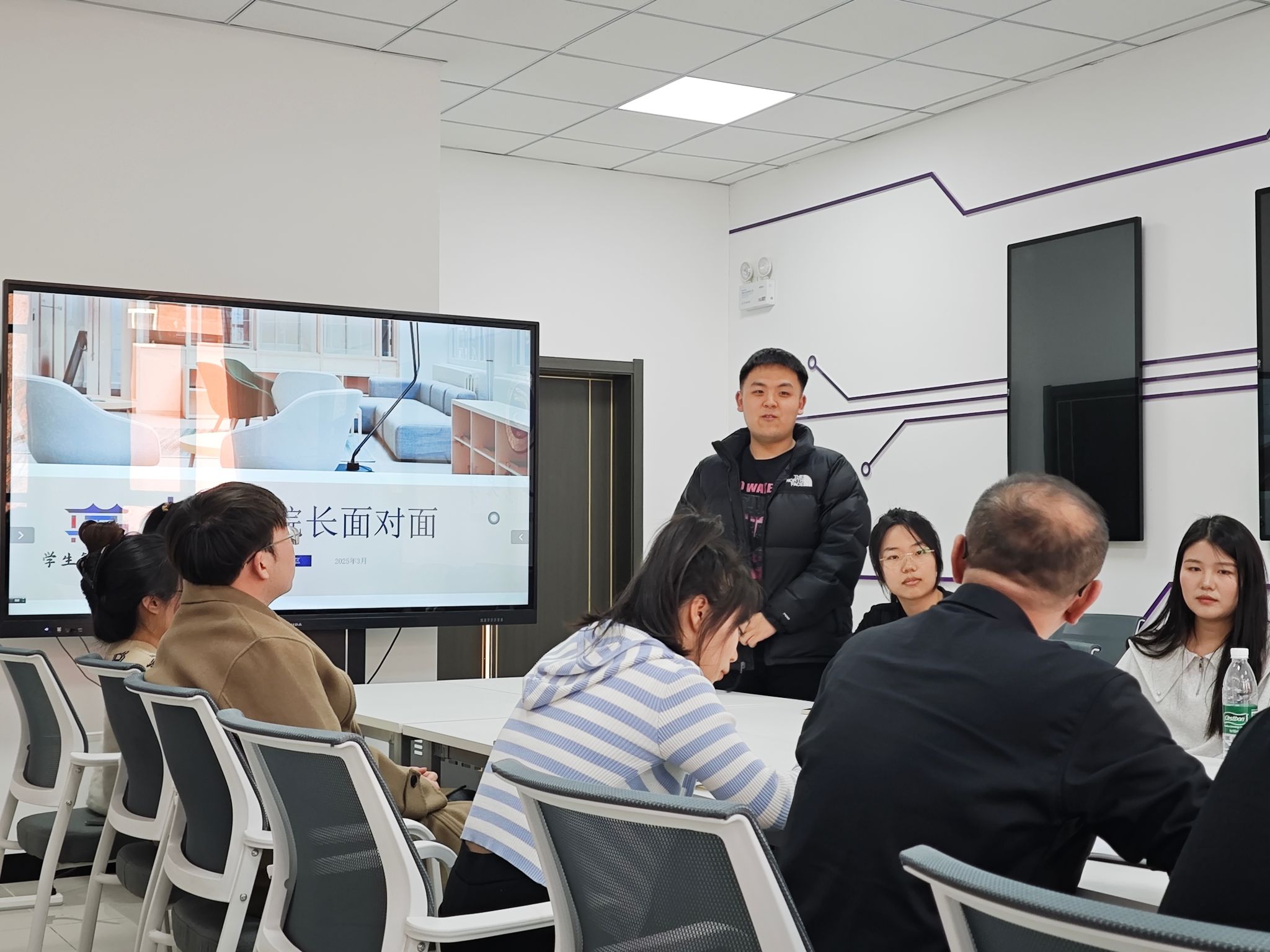 在自由交流环节,同学们踊跃发言。大家对本学期新启用的产教融合基地和授课的企业导师评价良好,认为企业课程对就业能力提升有实质性的帮助。交流中同学们也围绕产教融合基地的教学环境、授课方式、课程衔接发表意见建议,对“一站式”社区建设等方面进行深入交流。