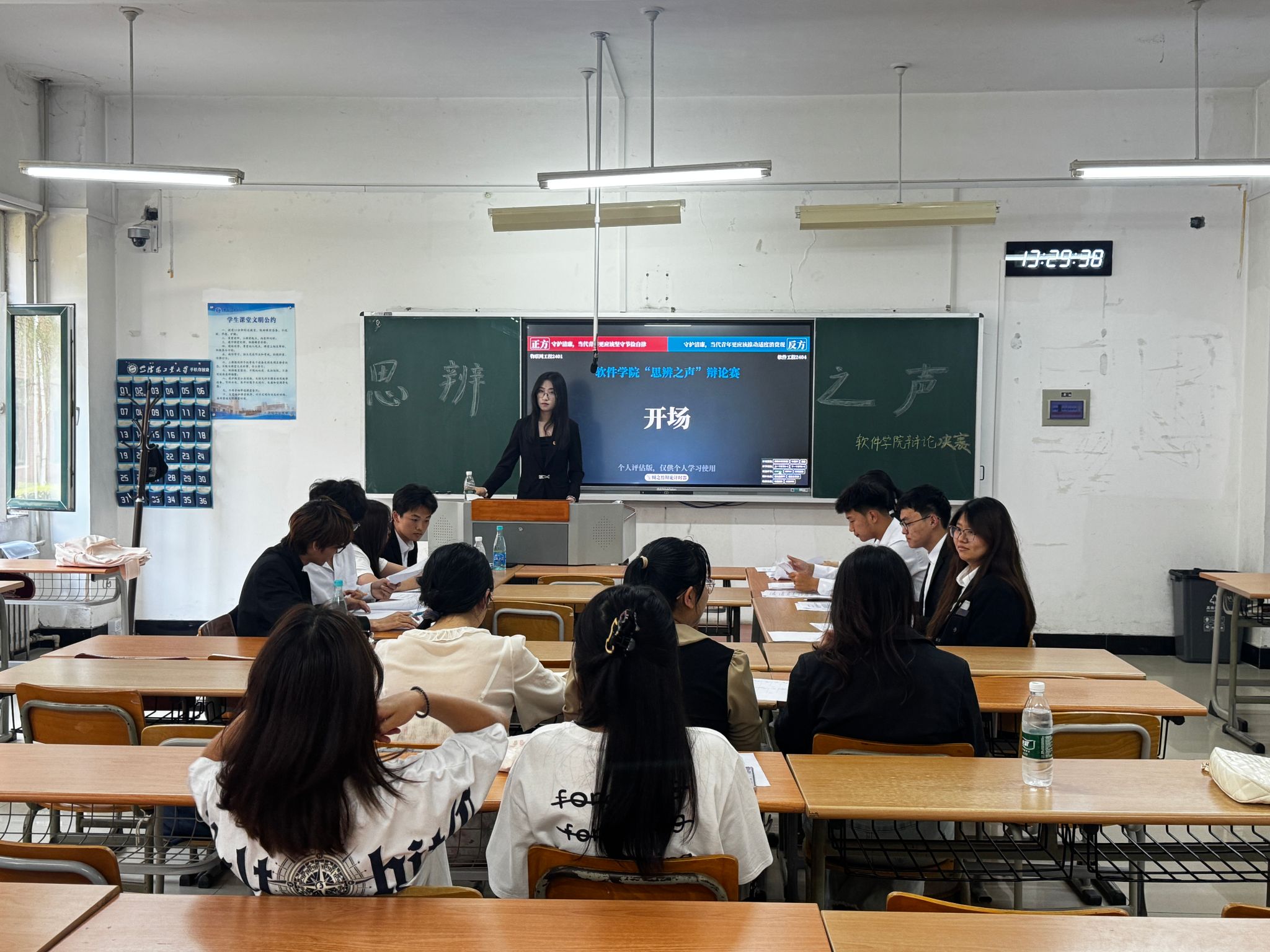 初赛聚焦“胜己与胜人”“顺逆境成长”“自我施压与和解”等贴近青年成长的辩题,辩手们结合理论与案例深入剖析,带动学生群体对成长议题进行反思,促进思想认知多元化。赛场上团队默契配合,辩手自信交锋,充分展现了软件学子积极向上的精神风貌。同时,赛事吸引众多同学观赛,赛后讨论持续发酵,激发了学生关注热点、乐于思辨的热情。