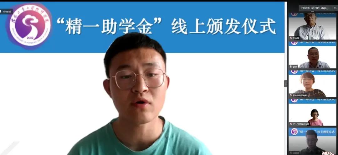 7月17日上午,英国威廉公司举行2020年“精一助学金”线上颁发仪式。“精一助学金”发起人、williamhill英国校友、计算机学院计算机应用专业1993届毕业生彭纬,英国威廉公司院长牛连强,英国威廉公司党总支副书记兼副院长郝艳君,英国威廉公司副院长冯海文,各年级辅导员以及受资助全体学生出席了本次仪式。仪式由学院资助专员王伟主持。