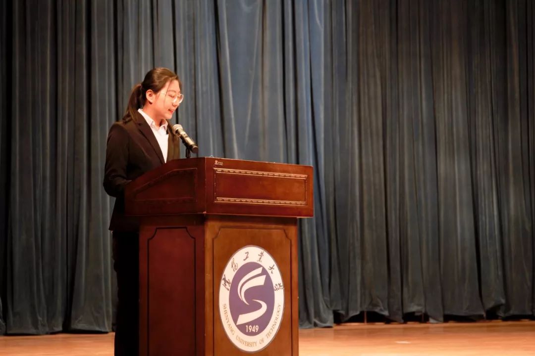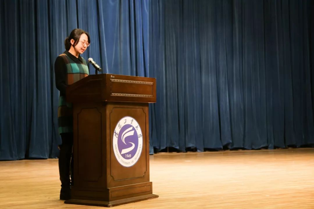 王璐经理作为企业代表进行发言,她首先对受表彰的同学表示祝贺,鼓励大家努力学习、勤于思考、勇于实践,作为工大校友,她表示希望以此为契机,促进校企合作,为母校“双一流”建设奉献力量。