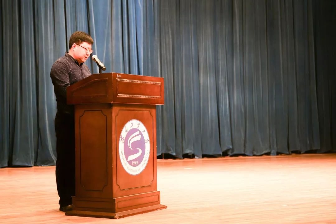 颁奖仪式结束后,校十佳班级班长胡奇作为先进集体代表发言。胡奇从思想引领、学风建设、科技竞赛、文体活动四个方面充分展现了我院学风建设的优秀成果,并表达了未来班级定会不忘初心,砥砺前行的决心。