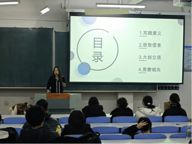 11月26日,第二场讲座在F105教室如期举行。陈曦老师围绕“大创计划与竞赛全流程实操”展开深度讲解。开篇她点明创新创业教育的多元价值——不仅能培养创新精神,也与评优评先、就业保研考研等学生发展需求紧密关联。随后他解读“大创计划”的定位:这是调动学生创新创业主动性的全国性申报项目,涵盖创新训练、创业训练、创业实践三类核心方向,同时包含“思想政治”“青年红色筑梦之旅”等特色项目类别;并梳理出“组织团队-初步选题-对接指导教师-撰写申报书”的完整流程,明确“跨院校、院系、年级、班级”的组队规则,建议选题结合“行业热门、社会热点、专业领域”,同时讲解了不同级别项目的验收形式与结题标准。