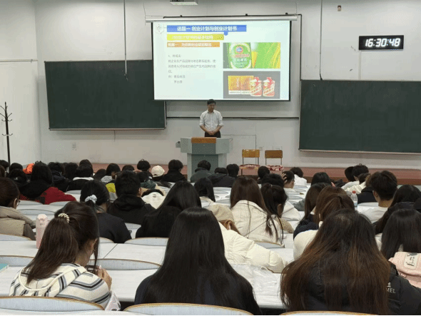 11月5日,首场讲座于E201教室开讲,张笑东老师以“创业计划书的核心价值与撰写技巧”为主题展开分享。他以《隆中对》作喻,将其类比创业计划书的战略意义,用“拿下荆州”对应“创业第一桶金”,生动诠释了一份优质计划书对项目起步的关键作用;随后结合“千团大战”“外卖平台市场争夺”等行业案例,直观呈现市场竞争的底层逻辑。同时,张老师逐一讲解创业计划书中“封面-目录-执行概要-正文-附录”的设计重点,台下学生纷纷抬头注视PPT内容,不时点头记录其中中的关键信息。